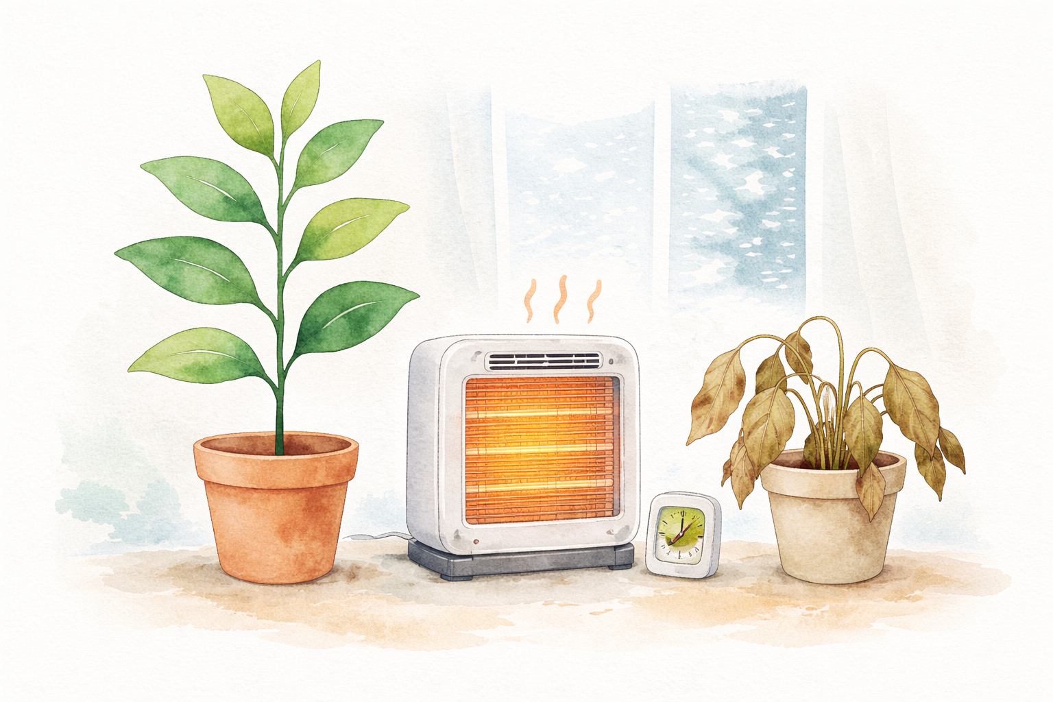 한 줄 요약: 따뜻함은 도움이 되지만, 난방기의 열과 바람은 식물의 생장 리듬을 깨뜨립니다.