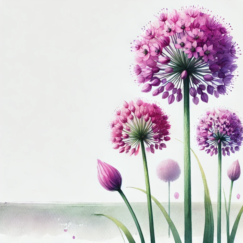 • 알리움 기간테움(Allium giganteum): 가장 큰 알리움 품종으로, 최대 1.5m까지 자랄 수 있습니다. 보라색 구형 꽃이 크고 화려해 정원 중심 장식용으로 인기가 높습니다.