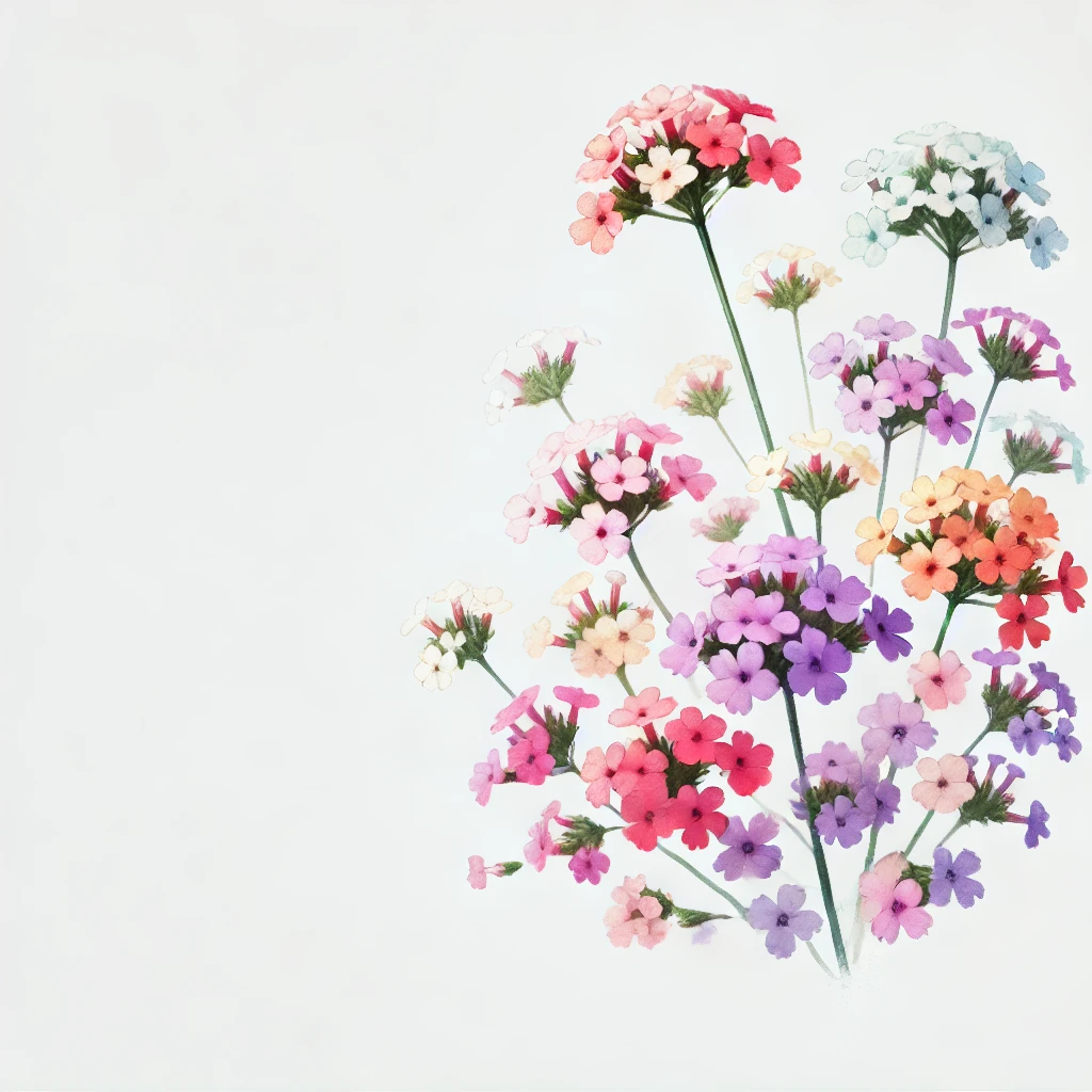 - 버베나 히브리다(Verbena hybrida): 가장 널리 알려진 품종으로, 가든 버베나로 불립니다. 다양한 색상의 꽃이 피며, 화단 및 화분용으로 인기가 많습니다. 잔디밭 가장자리를 장식할 때 사용하면 시각적 포인트를 제공합니다.
