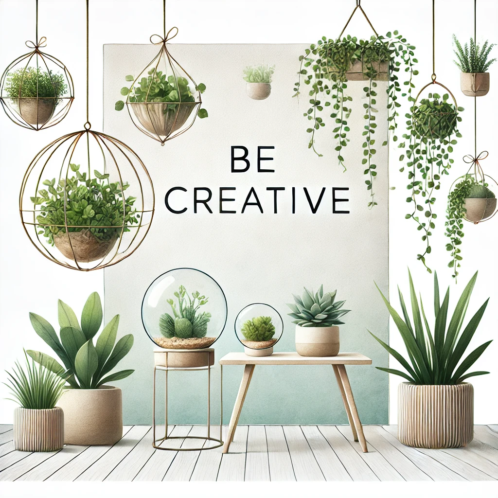 - 추천 식물: 덩굴성 식물(아이비, 호야, 스킨답서스), 꽃이 아래로 피는 식물(베고니아, 제라늄, 미니장미)